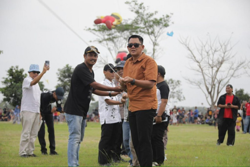 Foto: Wakil Bupati Sleman Danang Maharsa bersama jajaran Dispar Sleman dan panita pelaksana, melakukan penerbangan layang-layang saat membuka rangkaian "Sleman Creative Weeks" (slemankab.go.id)
