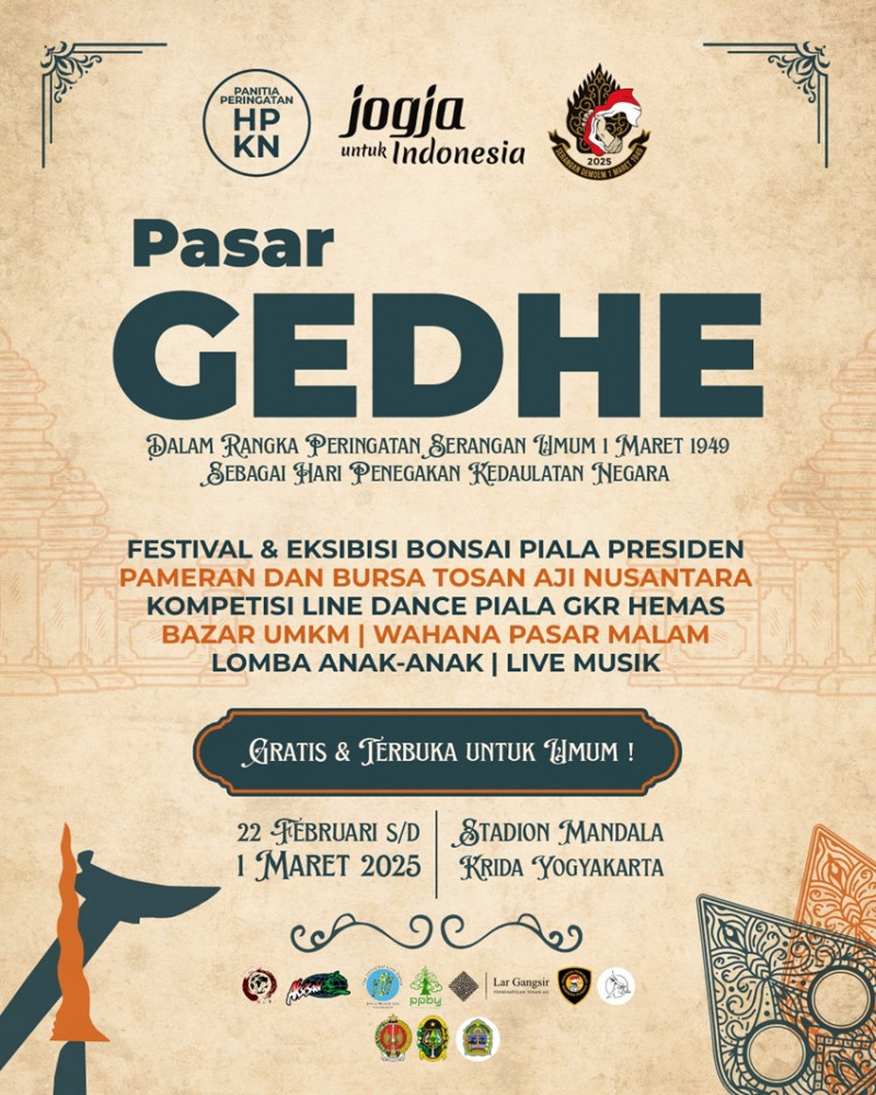 Pasar Gedhe 2025 siap memeriahkan Jogja pada 22 Februari – 1 Maret 2025 di Stadion Mandala Krida.